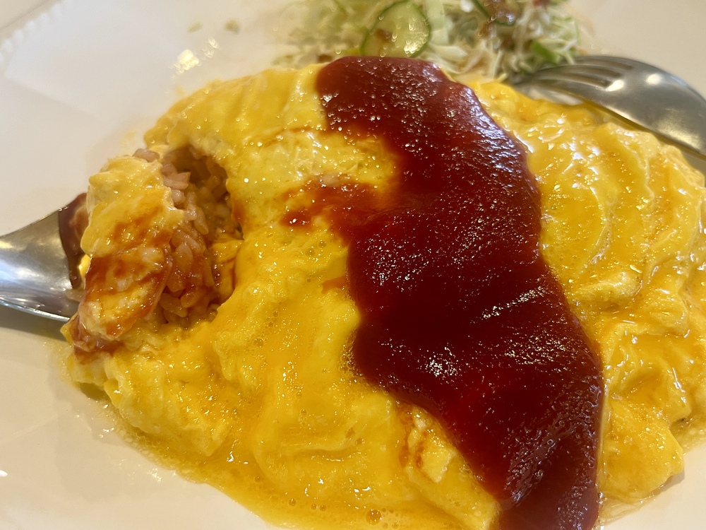 控えめな酸味のケチャップソースが全体を包み込み、口に入れるたびにほっとするような優しさが広がります。