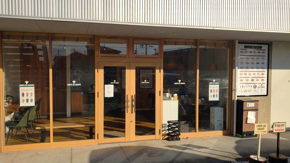 建物の1階部分がジラフクレープで、すぐ隣は純生食パン工房 HARE/PAN 小山店、トリュフドーナツ 小山店です。