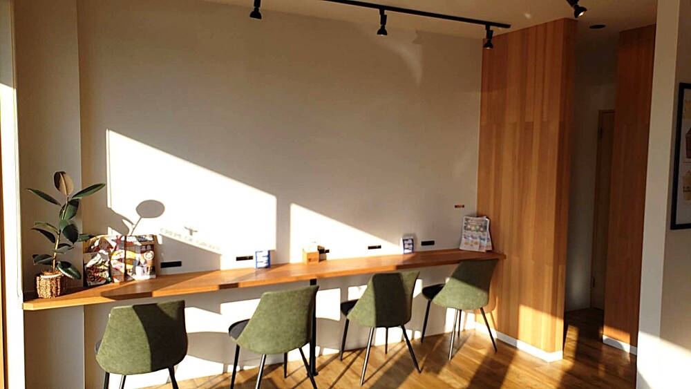 店内は綺麗で清潔感があって時間を忘れてゆっくり過ごせそう。白と木目を基調とした店内はクレープの写真を撮るのにもぴったりです。