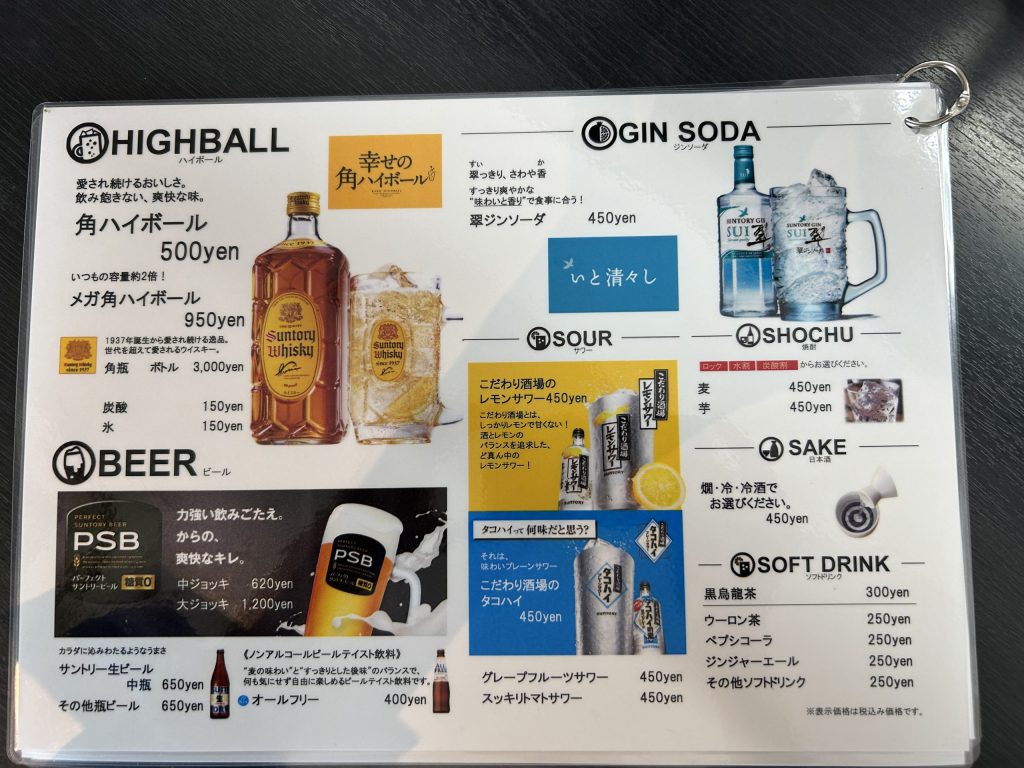 お飲み物のメニューも充実。わたしたちはランチ時に伺いましたが、隣の席でノンアルコールビールを飲みながらラーメン&餃子を食べているサラリーマンを見かけました。餃子とノンアルコールビールは相性良しですね。