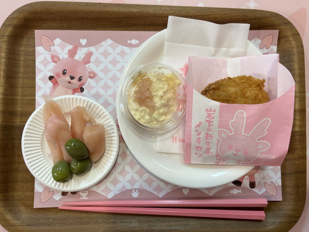 豊富なメニューに迷った結果、岩下の新生姜®メンチカツを注文。