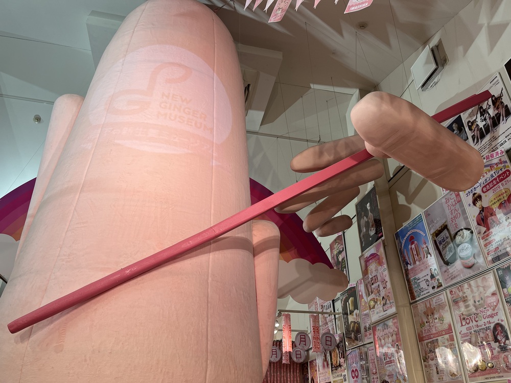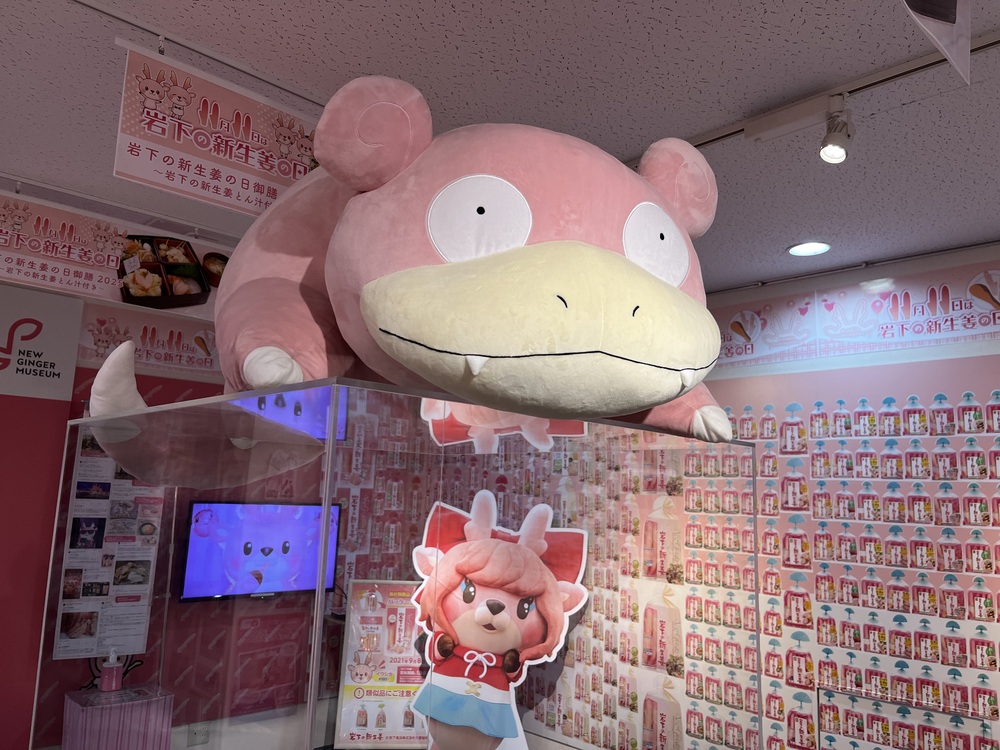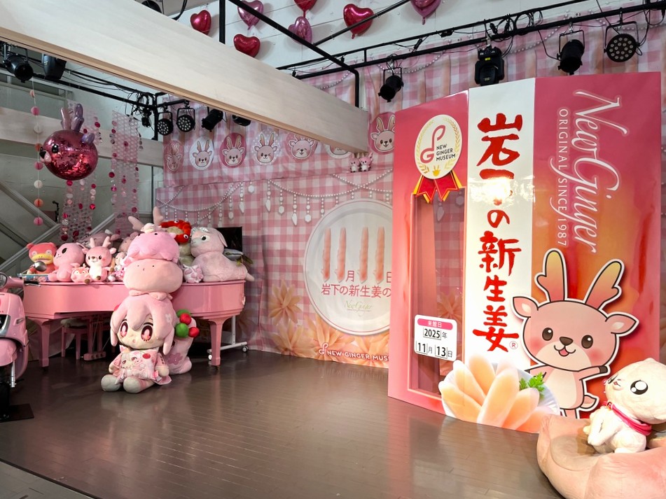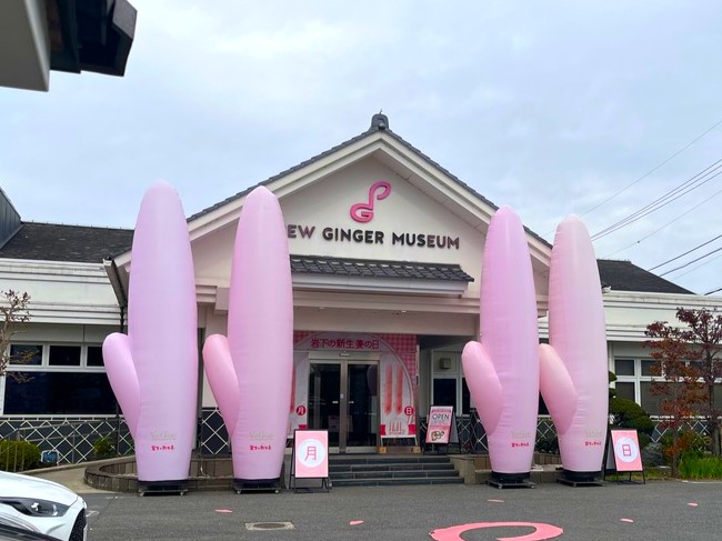 私が訪れたときは「岩下の新生姜の日2025」のシーズンイベントが行われており、大きな新生姜が4本出迎えてくれました。