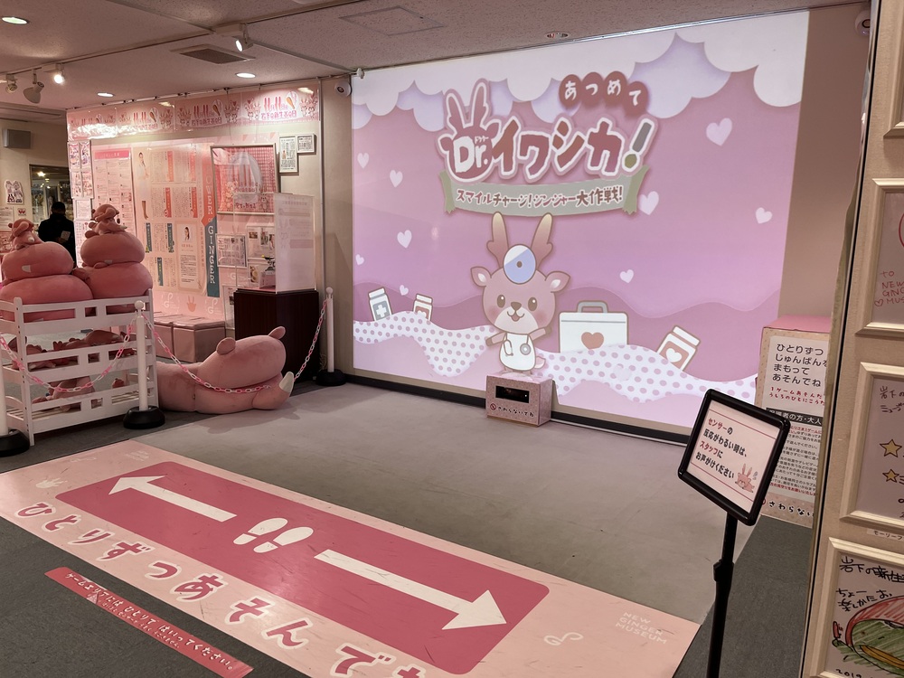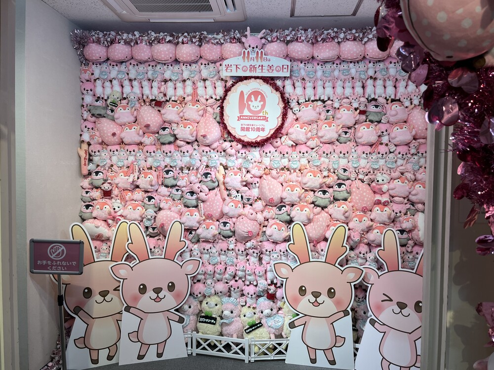さらに進むとイワシカ®ちゃんとピンクのキャラクター達で埋め尽くされた「ぬいぐるみの壁」がお出迎え。見ているだけで癒されます。